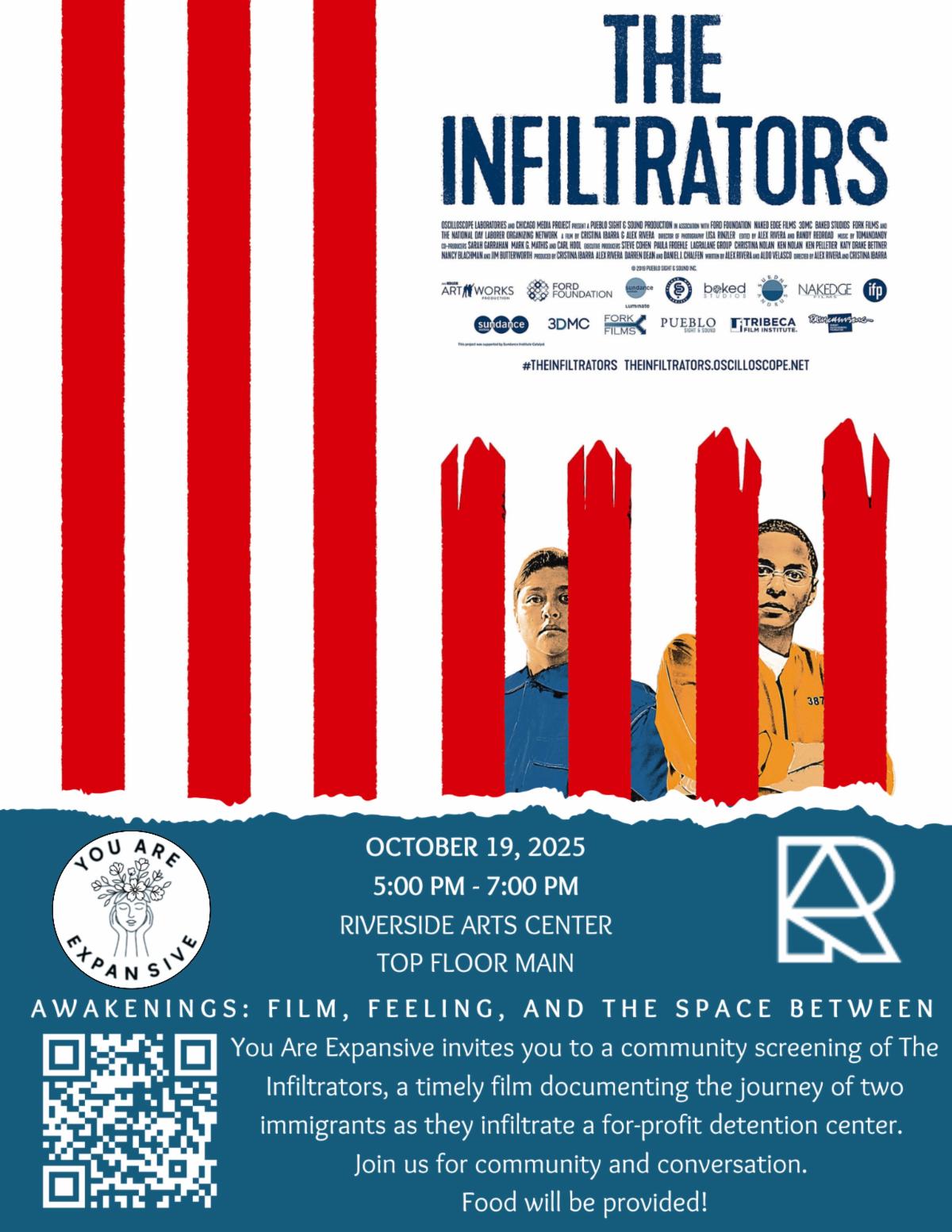 You Are Expansive invites you to a community screening of "The Infiltrators," a timely film documenting the journey of two immigrants as they infiltrate a for-profit detention center.