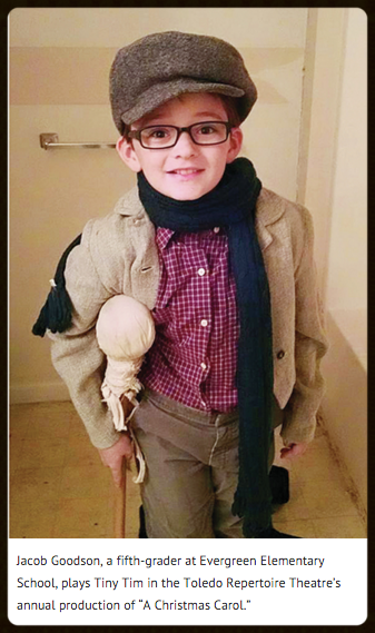 "[I]n the Rep's 30th anniversary edition this weekend at the Valentine Theatre in Toledo, Jacob [Goodson] plans to dazzle audiences as Charles Dickens' frail, diminutive but ever cheerful hero, Tiny Tim." |