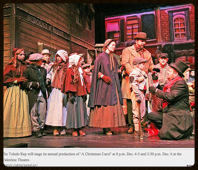 You may also purchase tickets by calling (419) 243-9277, by visiting The Rep's Box Office or in the lobby of The Valentine Theatre during the run of A Christmas Carol.