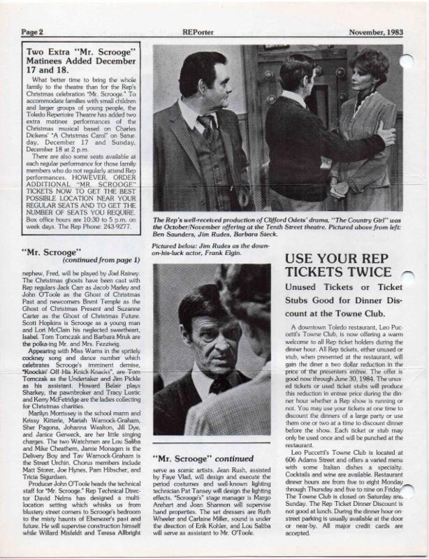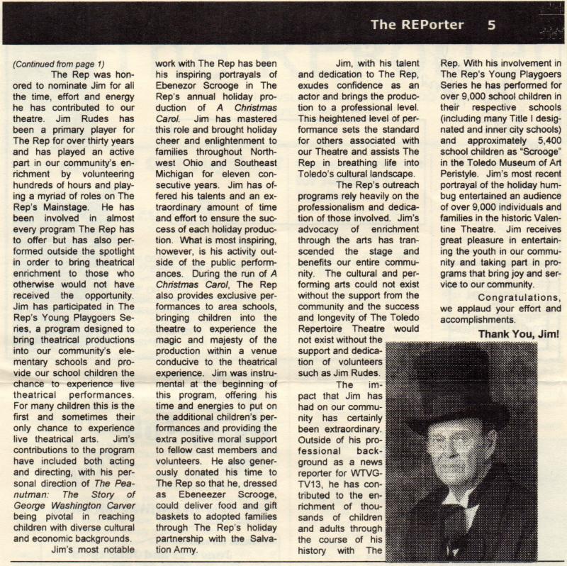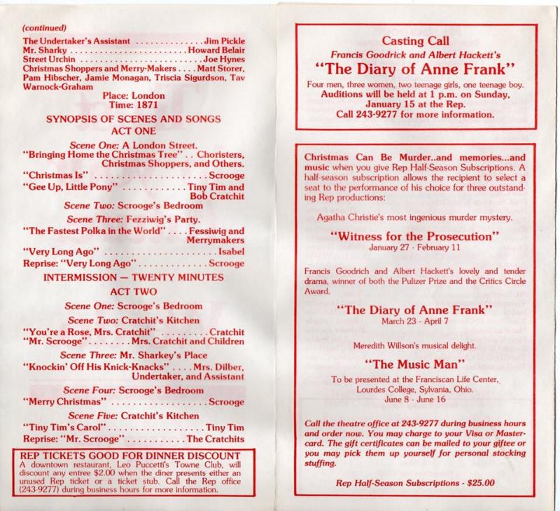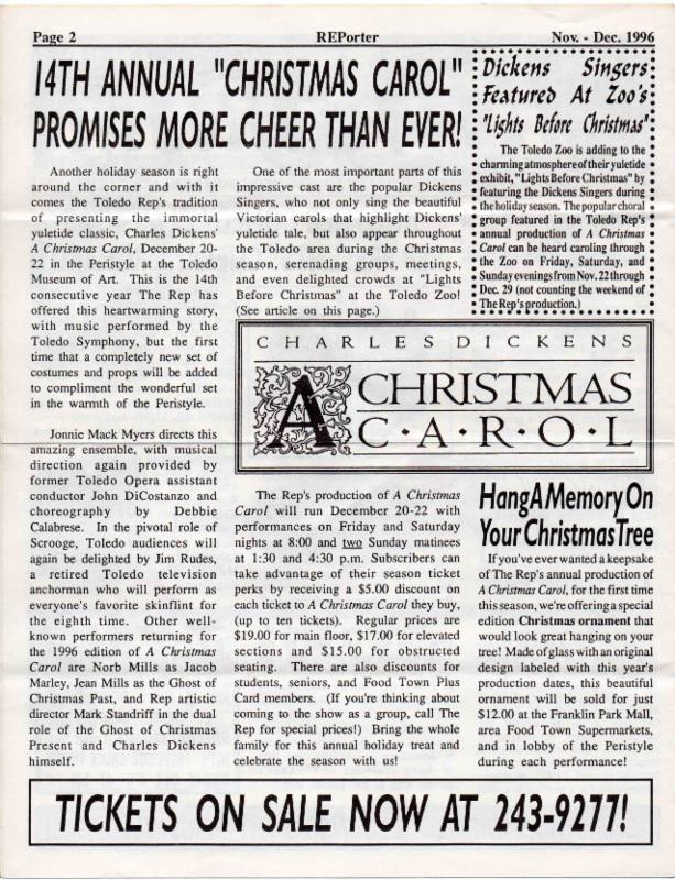 No matter how long you have been away from the sights and sounds of The Rep's holiday classic, the spirits of Christmas Past, Present and Future, miserly old Scrooge and everyone here at The Toledo Rep would like to welcome you back home!