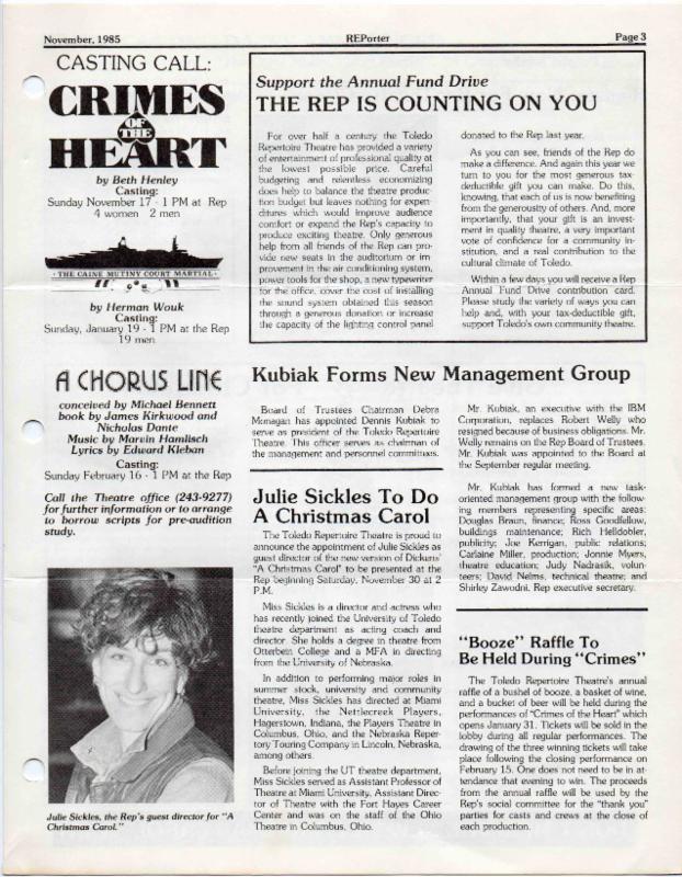 In operation since 1933, The Rep is a cornerstone of Toledo's artistic tradition. Contributions make the difference, and we appreciate the contributions of many individuals and organizations that help to support live theatre in the Toledo area.