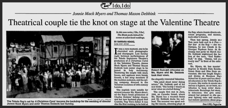Did you know that longtime director Jonnie Mack Myers got married on the set of A Christmas Carol back on December 19, 1999?