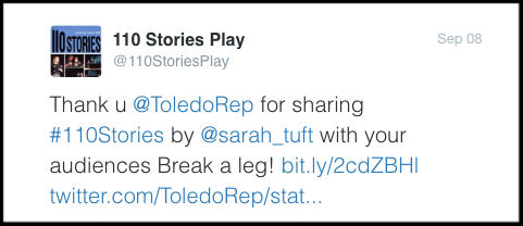 The official account for 110 Stories tweeted our cast and crew wishing them luck this weekend!