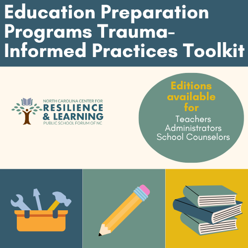 The North Carolina Center for Resilience & Learning is proud to announce the release of the Education Preparation Programs Trauma-Informed Practices Toolkit, designed specifically for educator preparation programs across North Carolina.