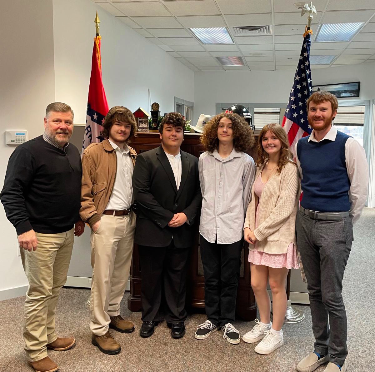 Top Photo: Left to Right - Congressman Rick Crawford, Justin Coats, Joseph Harvey, Jerry Burton, Emily Byrd, Jason Blake, Instructor.