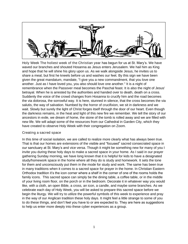 On Good Friday your Sacred Space should be empty. Later in the Liturgy you will asked to place a cross in your Sacred Space.