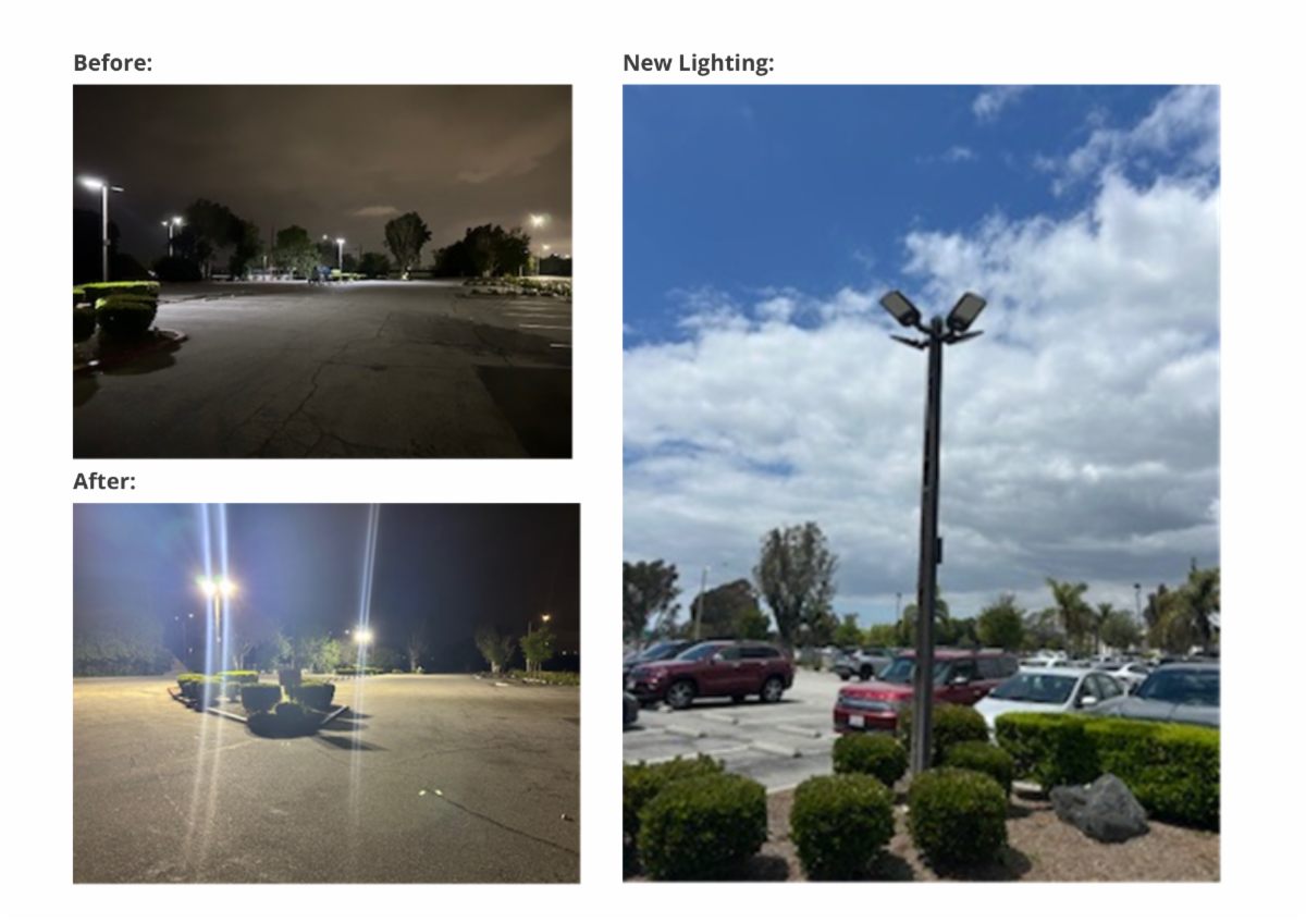 As part of the improvements, additional lighting was installed to enhance visibility and overall safety. Two new LED light heads were added to each pole—bringing the total to four high-efficiency LED lights per post. These upgrades have made a dramatic difference, eliminating dark, shadowy, and poorly lit areas throughout the parking area.