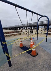 As part of the City’s ongoing playground maintenance, the Public Works maintenance crew recently completed a patch repair at the Pier playground. A worn section of the rubber surfacing beneath one of the swings was expanding, and the issue was brought to the City’s attention by a concerned community member.