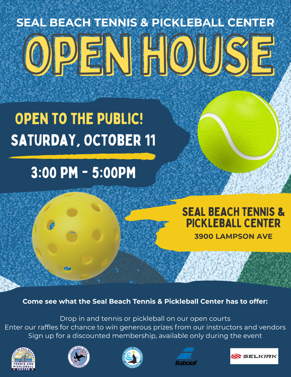 The Seal Beach Tennis & Pickleball Center is hosting a special Open House on Saturday, October 11, from 3:00 p.m. to 5:00 p.m. This is a fantastic opportunity for the community to explore the facility, try your hand at tennis or the fast-growing sport of pickleball, and maybe even walk away with some amazing prizes.