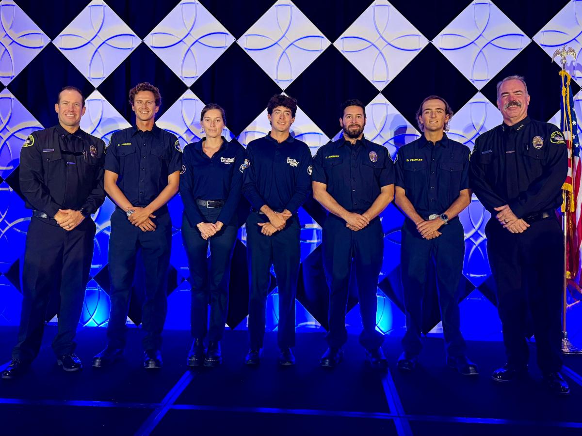 September 18th. Lifeguards Dean Frizzell, Ellie Sherlock, Chris Dominguez, Brett Peoples, and Beau Wade were honored by the Orange County Business Council for their heroic rescues last December.