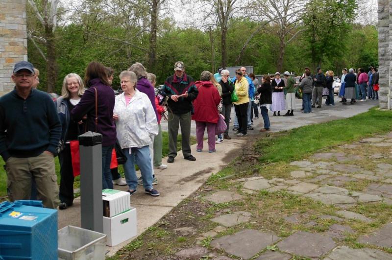 Community members waiting in line to buy books