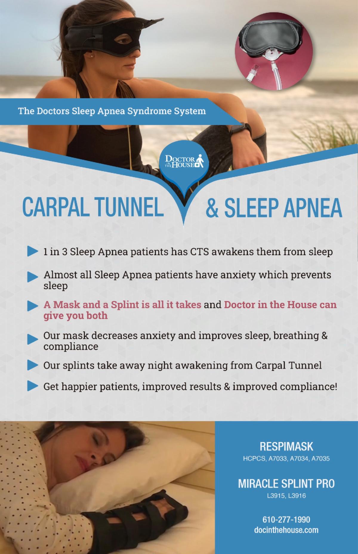 Did you know that over 30% of Sleep Apnea patients have Carpal Tunnel? This is usually a bilateral problem that causes night awakenings from numbness and tingling in the hands.