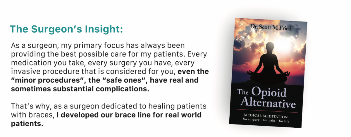 Its creation was one of necessity when I sustained a substantial injury to my shoulder while snowboarding with our family in a blizzard in Vermont. I was trapped in a house there for days and could not tolerate any of the standard slings or immobilizers due to their claustrophobic feel and the pulling on my neck from their neck straps. Out of desperation, I cut the straps off my ski pants and attached them to a fanny pack supporting my arm! It gave me instant relief and allowed me to drive home in the blizzard for 12 hours, controlling my pain. Hence the Neck Free Shoulder device was born and has helped well over 10,000 patients obtain relief and also avoid frozen shoulder! | |