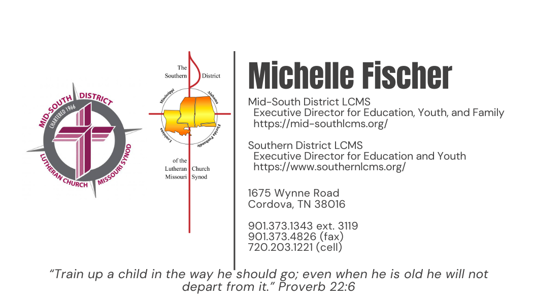- Rev. Dave Moerbe, pastor at Good Shepherd LC, Gardendale, AL. has spearheaded a youth work training co-op for congregations interested in improving or starting youth ministry. They meet via Zoom and are having a great impact! This is one of those things where the Southern District is no longer able to afford to hire a youth person, so Pastor Moerbe stepped in the gap, took the horse by the reins, and started something, using the gifts and talents the Lord has given him, to fill the gap!