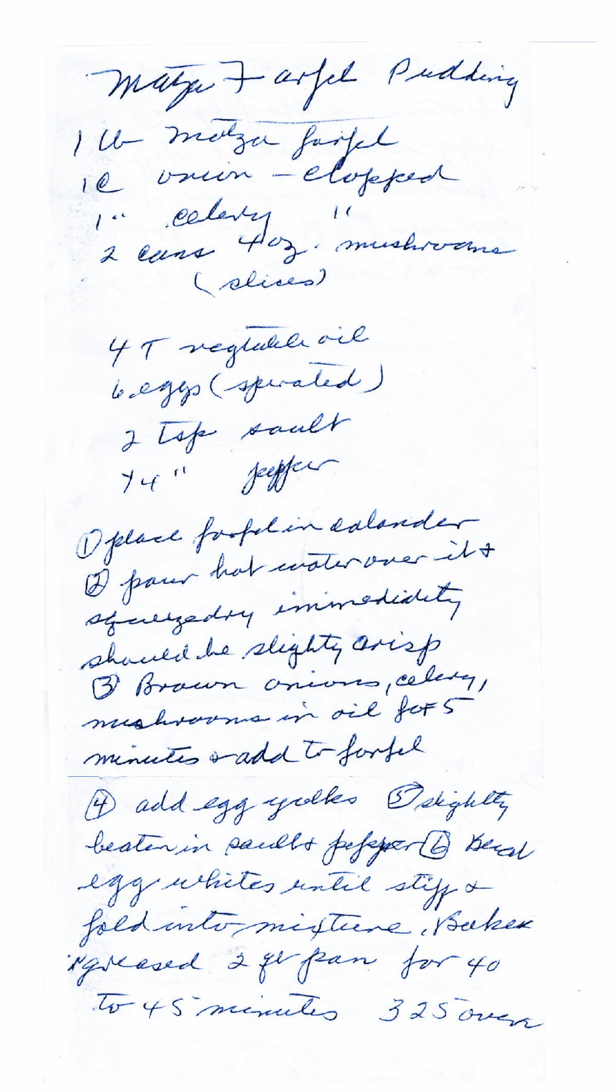 Gertrude Budiansky's (z"l) Matzo Farfel Pudding Recipe | |