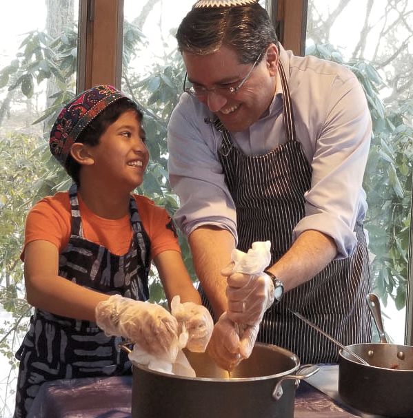 In this family photo Rabbi David and his son Pukar prepare shira, traditional Indian date syrup charoset.* | | |