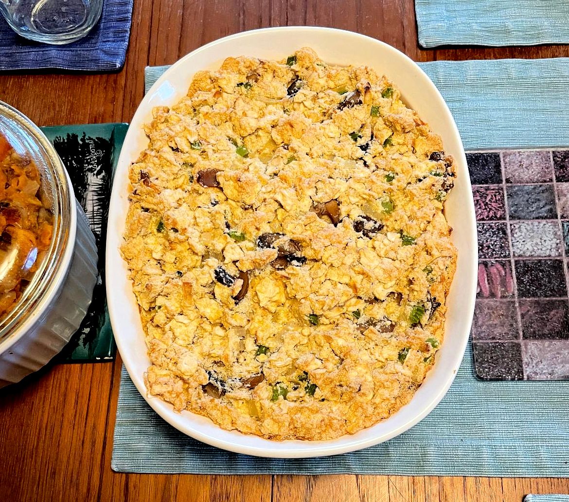 My mother compiled a collection of favorite recipes for Passover. Gertrude lived in an apartment building off of Queens Boulevard in New York City. She had lots of Jewish friends in the building and they swapped recipes often. Gertrude lived in apartment 5A. She got this recipe from Miriam, across the hall in 5D. Matzo Farfel Pudding is a side dish that you would serve at dinner. It serves 10–12. Judy and I tested the recipe last month. It was quite good. Everyone had seconds.