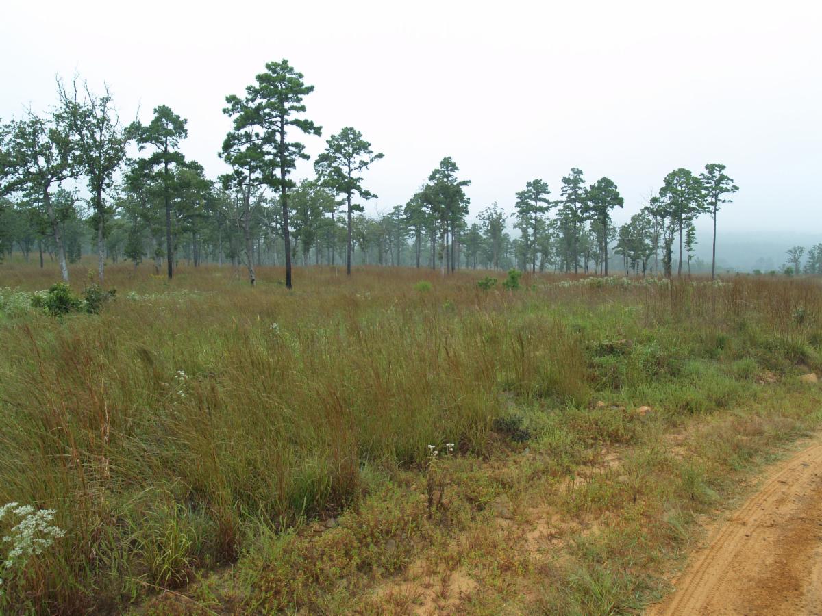 Attractive shortleaf pine-hardwood savanna with an herbaceous understory maintained by grazing and prescribed fire. Photo by Clarence Coffey | |