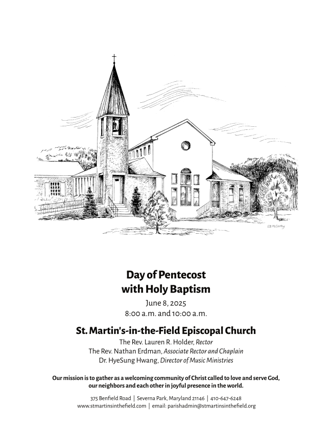 Join us as we do all in our power to support the newly baptized in living out their life in Christ and in renewing our Baptismal Covenant. Come to the Parish Hall before worship for a Pentecost Party celebrating the newly baptized, our confirmands, and Pentecost. The celebration continues in Baltimore at Cathedral of Incarnation as The Right Rev. Carrie Schofield-Broadbent welcomes youth and adults from our parish to be confirmed and received in the Episcopal Church. Join us in-person or online at 3:00 p.m. Contact Rev. Lauren.