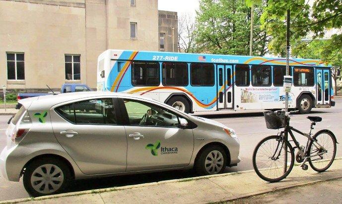 Go ithaca partners with TCAT and Ithaca Carshare to reduce single -occupancy vehicle use. Photo courtesy of Darlene Weber.
