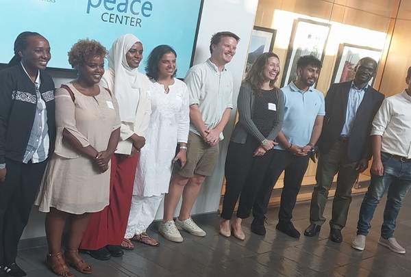 | | Tibeb Abate second from left. Peace Fellow classmates at Duke University 2024-25 orientation. | | |