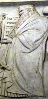 A carving of Moses holding