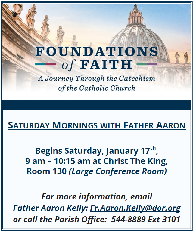 OCIA: This process is for anyone over the age of 16 that wants to become fully initiated into the faith of the Catholic Church through the sacraments of Baptism, First Communion, Confirmation or any combination of the three. Contact Mark Keller mark.keller@dor.org