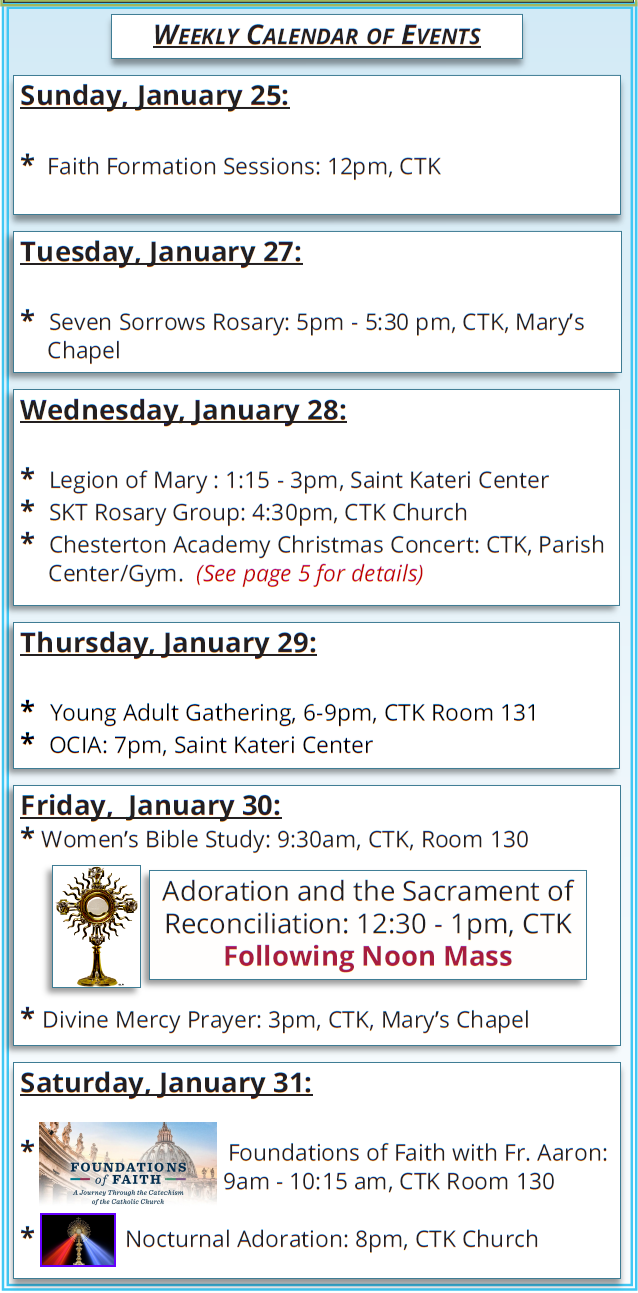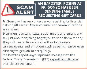 Confirmation: A two-year journey for those in Grade 8 and older to prepare for the Sacrament of Confirmation.