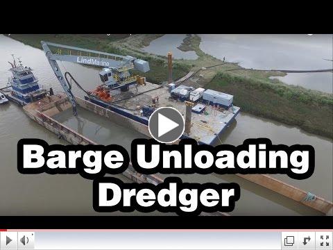 A suction dredge is mounted on the E-Crane and used to clean out barges. The E-Crane is used to position the suction dredge within the barge. This client is creative along with many other clients, and it is not surprising that Lind Marine has come up with this unique application.