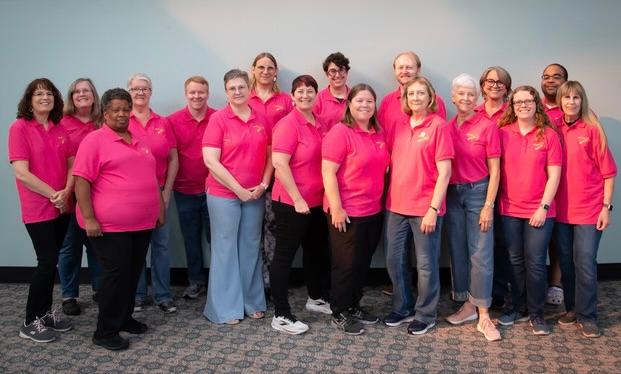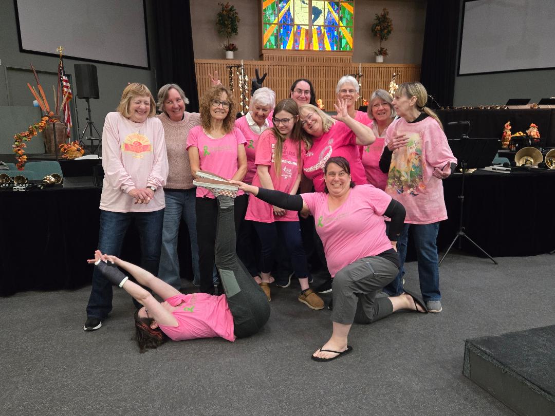I love going to handbell events! My group gets to hang out together and we get to see old friends and make new ones. We also get to work with some great clinicians, like Matthew Compton at the Redding Festival! Here's a picture of us at Redding celebrating our breast cancer survivors:
