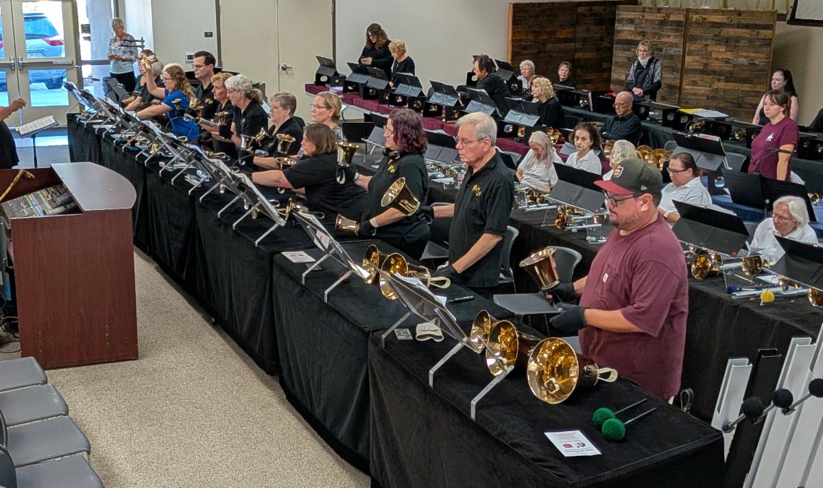 I’m pleased to report on the recent event we just held in Modesto, titled “Bells of Blessing: Hands in Concert Bringing Hope.” Nine local ensembles, churches, and individuals featuring over 50 ringers came together for this annual half-day festival and concert. The event began in 2011 anchored by Richard Colla and the Opus Handbell Ensemble. Ringers from teens to nonagenarians hailed from Modesto, Turlock, Escalon, Manteca, Fremont, and more. The group rang three massed pieces under the direction of Lisa Traughber. Individual pieces, small ensembles, and a duet were also shared. Together, participants raised over $5,000 for the Modesto Salvation Army. Much thanks goes to Lisa, Polly V, Deanna H, Burt V, Marilyn H, Melanie H, Bob K, and Carol S for pouring their time, energy, and heart into this special day.