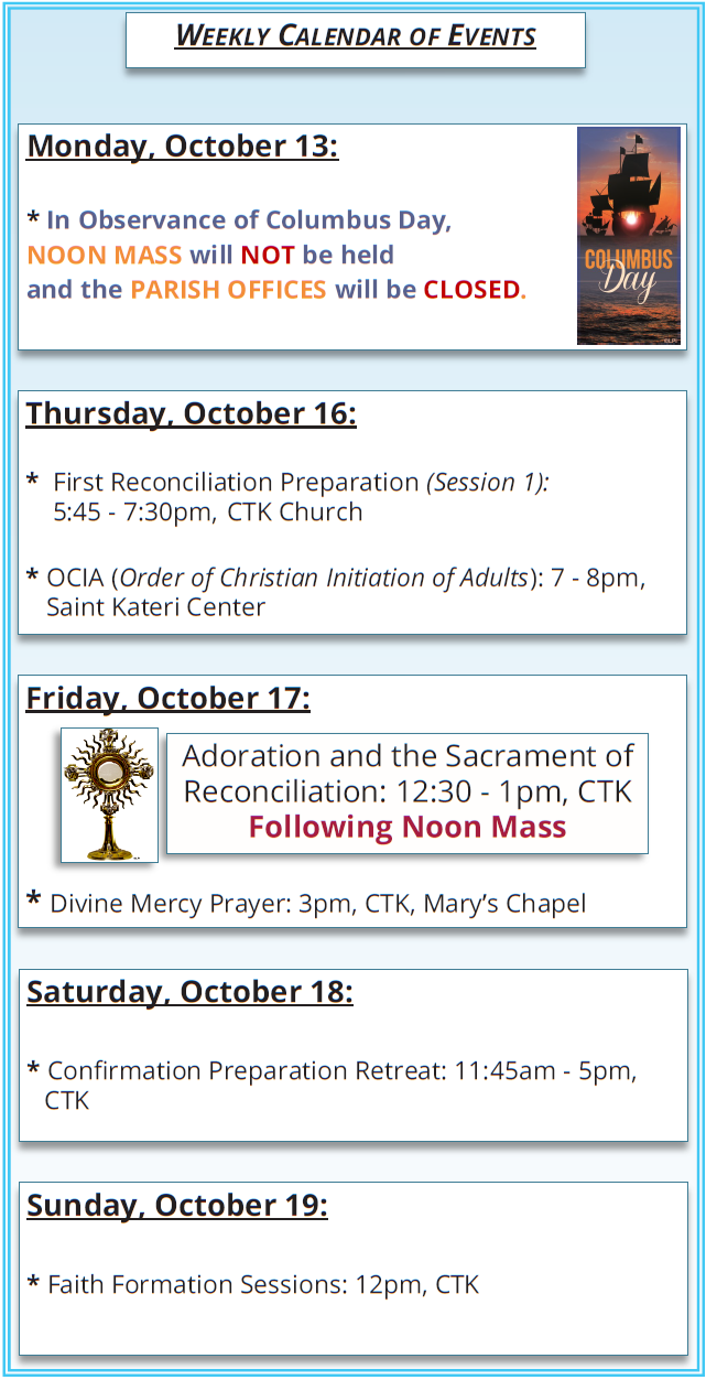 Confirmation: A two-year journey for those in Grade 8 and older to prepare for the Sacrament of Confirmation.