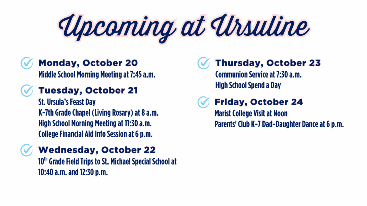 The application is open here and requires a $50 deposit via check made out to Ursuline Academy to save your spot. For any questions, please email Campus Minister Ms. Beth Joubert at bjoubert@uanola.org.
