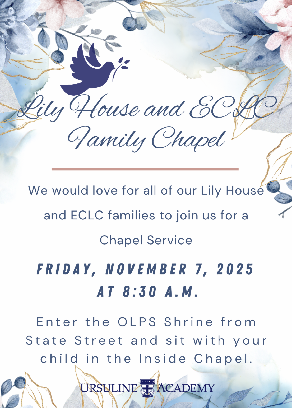 In the spirit of community, we would love to pray for the special intentions of our Ursuline family. Prayer intentions can be submitted through this form. Please note that during our Academy Masses, we mention the names of families who have lost loved ones.
