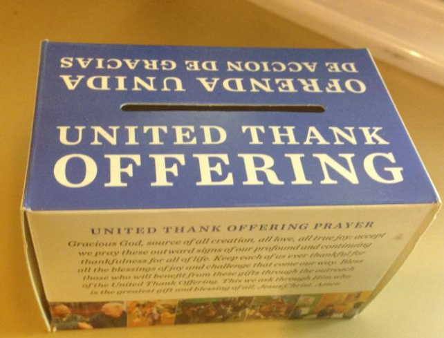 and add your pocket change daily in thanksgiving for your many blessings. We will collect these on May 8 during each service. United Thank Offering (UTO) is a ministry of the Episcopal Church for the mission of the whole church. UTO monies support mission and ministry throughout the Episcopal Church.