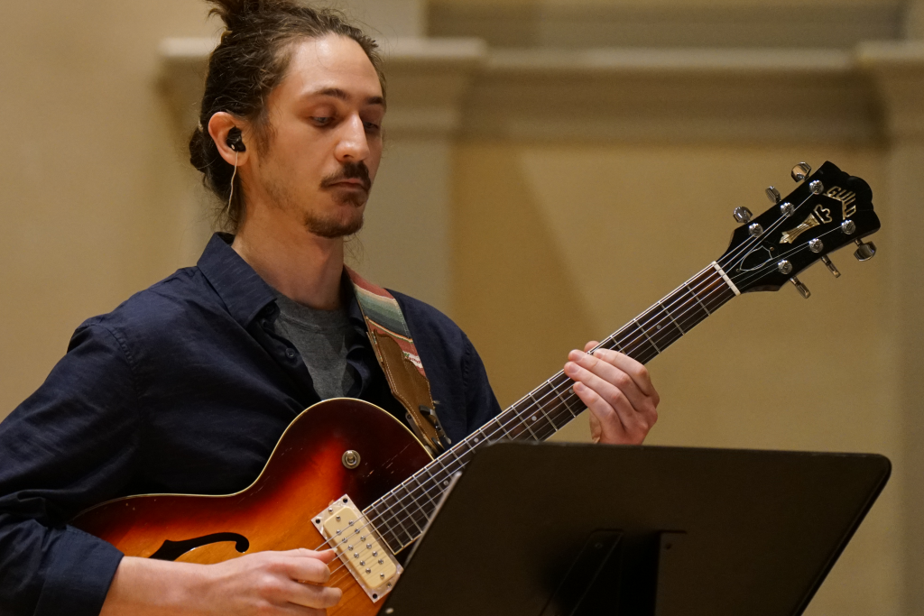 The Balinese gamelan ensemble Gamelan Yowana Sari performs with guitarists Kyle Miller and Jack Lynch.