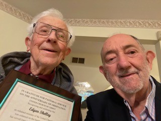 Rev. Ed Shelly (left) was honored for his 70th Ordination Anniversary by Association Minister, Daniel Busch (right).