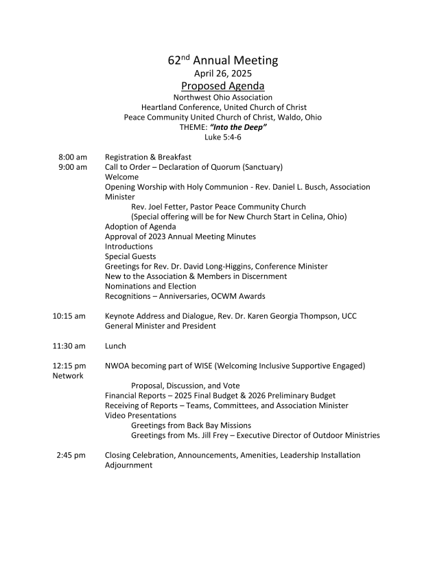 | | Annual Meeting will be held on Saturday, April 26, 2025 at Peace Community UCC, 4061 Columbus Sandusky Rd. S. Rt. 98, Marion, Ohio 43302 | | | | |