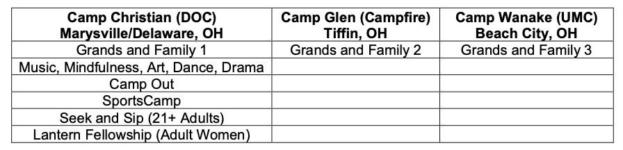 Heartland Conference Camps will be held in three locations bringing camp opportunities close for families in Central, Northwest, and Northeast Ohio. Here is a video to get a little glimpse of the camp properties.