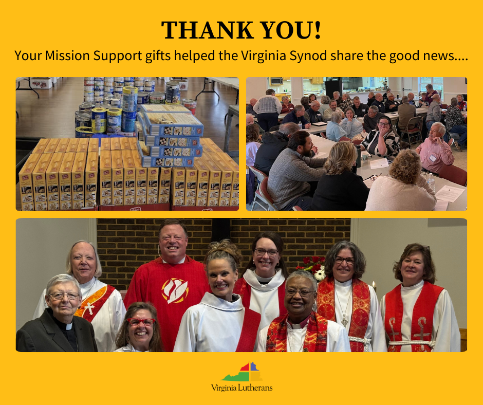 Your Mission Support gifts help make this work possible. Thank you for being part of what the Spirit is doing among us as the Virginia Synod!