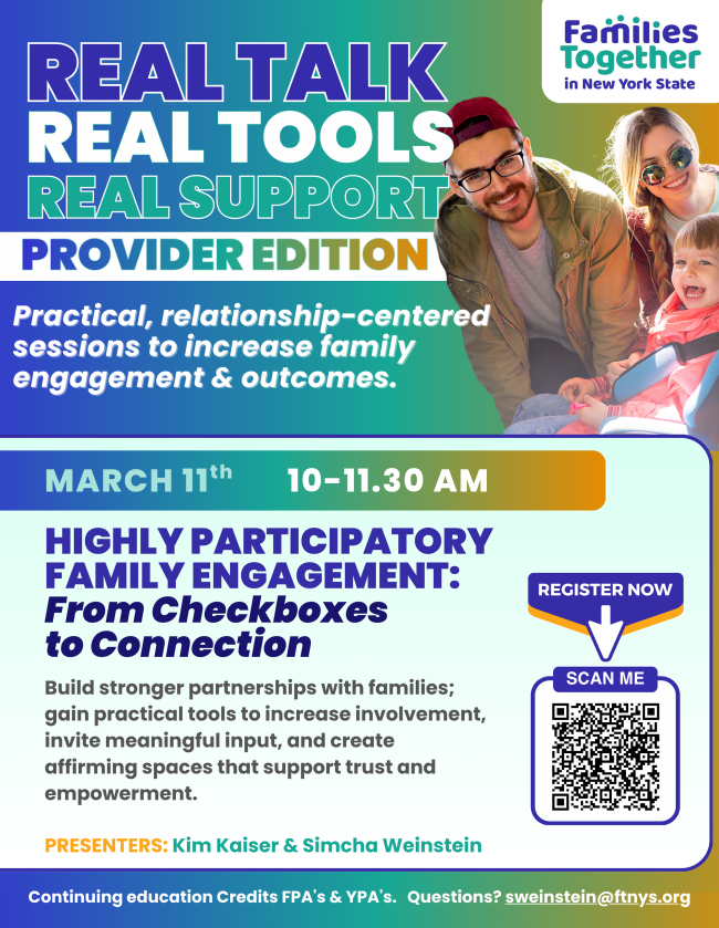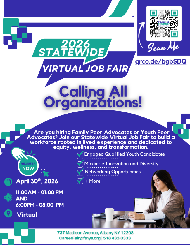 Join our certified trainers within Youth Power and Families Together in NYS as we host a virtual training series starting in March 2026. To best meet the needs of our network, we'll be offering 1 daytime series and 1 evening series. Official dates will be announced soon!