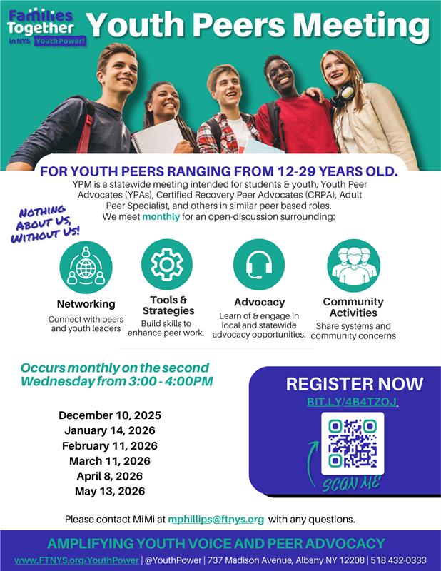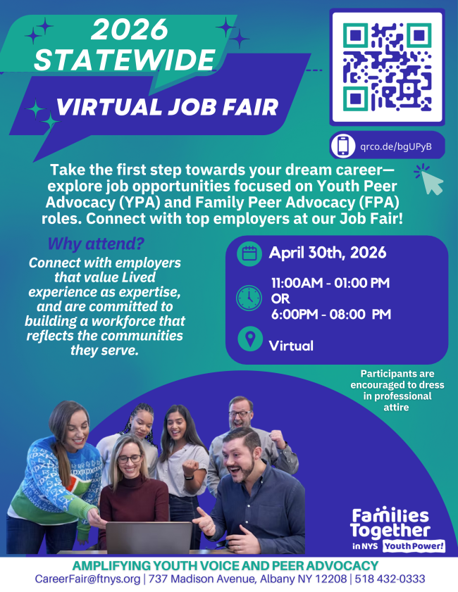 Join the Families Together in NYS Youth Power Network and connect with a statewide community of young leaders, advocates, and changemakers. Open to anyone interested in staying connected to Youth Power, including youth, organizations, and adult allies.