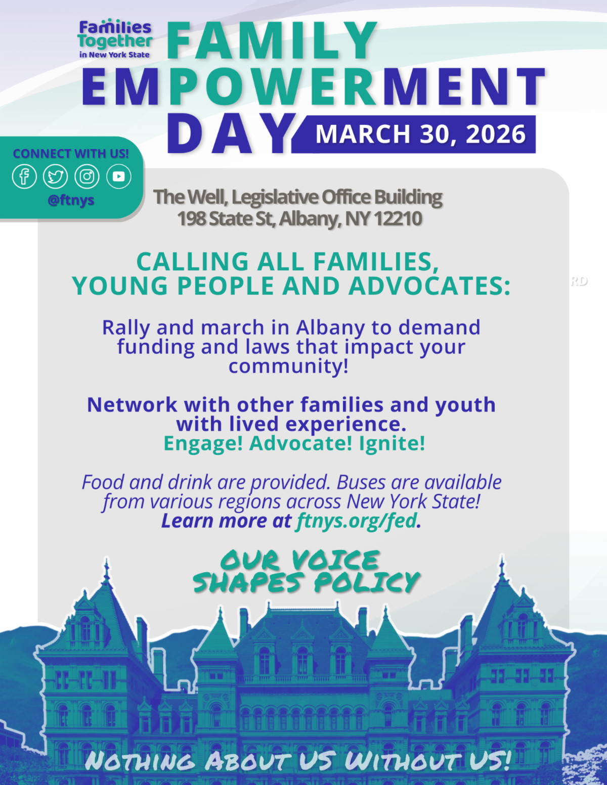 Families, youth, and advocates from across the state will come together for a rally and march to make our voices heard in Albany. FED is a powerful opportunity to show lawmakers what family-centered policy looks like in action.