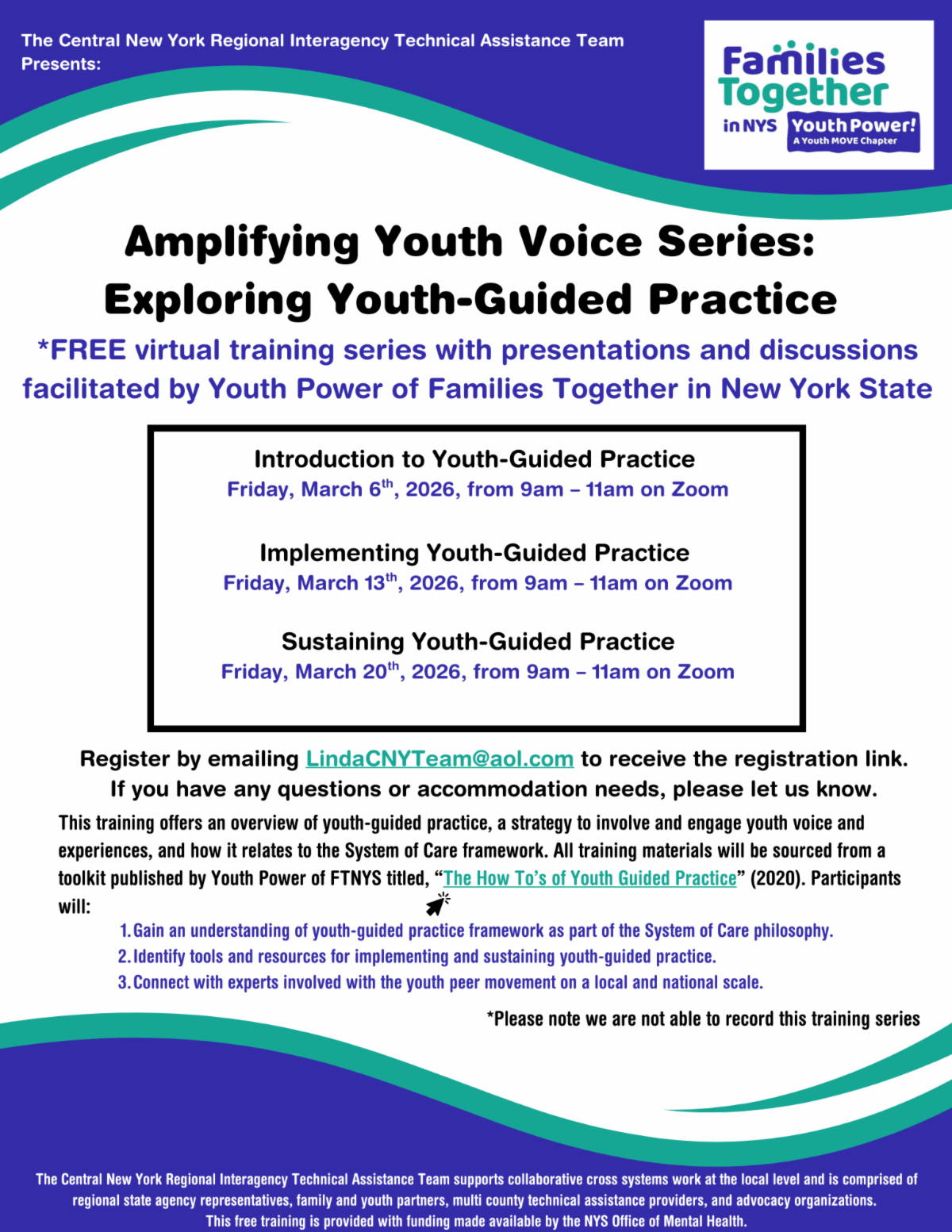 Join Youth Power and the CNY Regional Interagency Technical Assistance Team (CNY RiTAT) during our virtual training series held across March 2026.