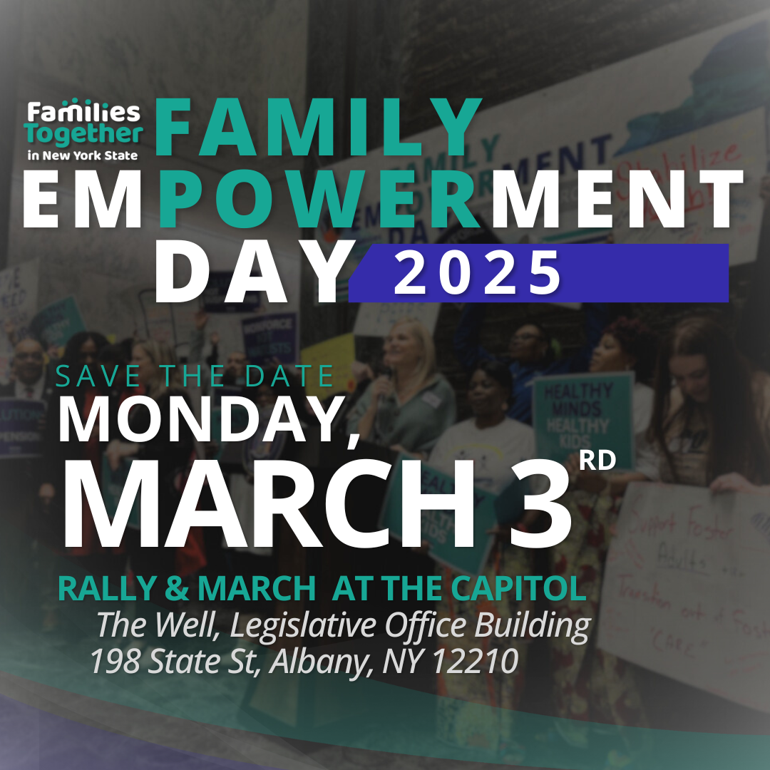 Join us again this year for this opportunity to bring together peers, advocates, and policymakers to champion the rights and well-being of youth and families. Come to the Capitol to rally, share your story, and engage in meaningful dialogue with legislators as we inspire positive change in policies affecting families across New York State.
