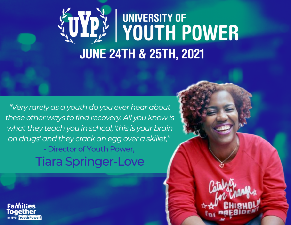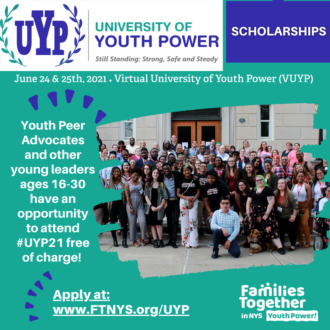 On June 24-25, 2021, we are hosting the seventh annual University of Youth Power via Zoom, a for-youth-by-youth social justice conference that is modeled after a college experience. UYP is the premier youth peer leadership conference that provides Youth Peer Advocates and change agents the opportunity to build skills and expand their professional network. Young people ages 16 to 30 can register with a major of Peer Advocacy, Systems Advocacy, or Recovery Advocacy. UYP 2021 will take place via Zoom.