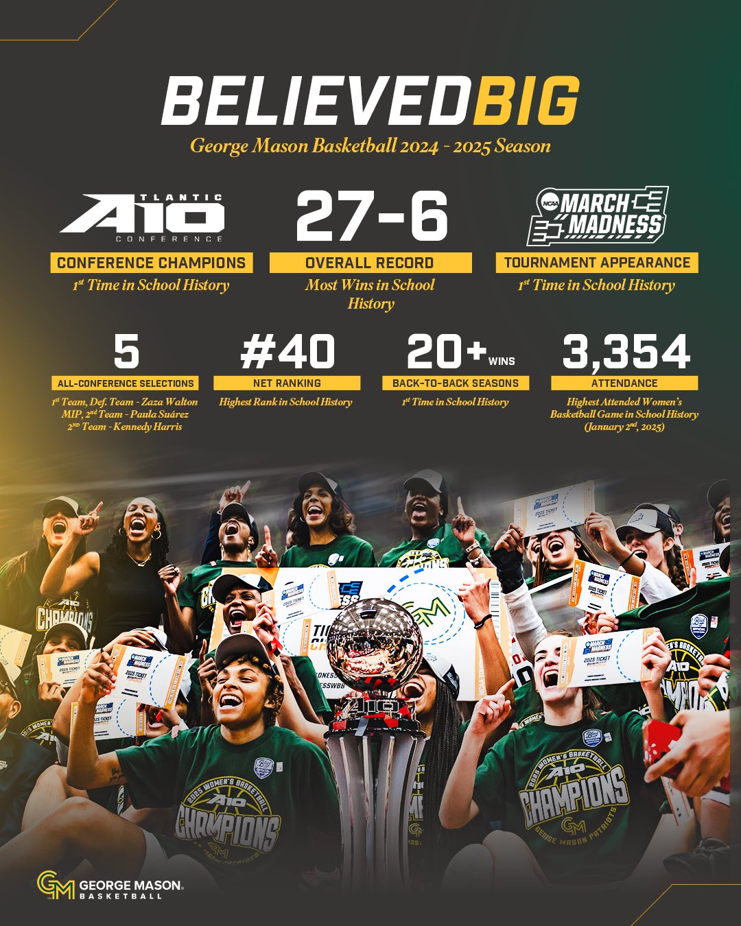 George Mason's Men's Basketball Team also had an impressive season, finishing second place in the Atlantic 10 conference before falling in the second round of the NIT. I'm looking forward to seeing both the Women's and Men's teams soaring to even higher heights next year!