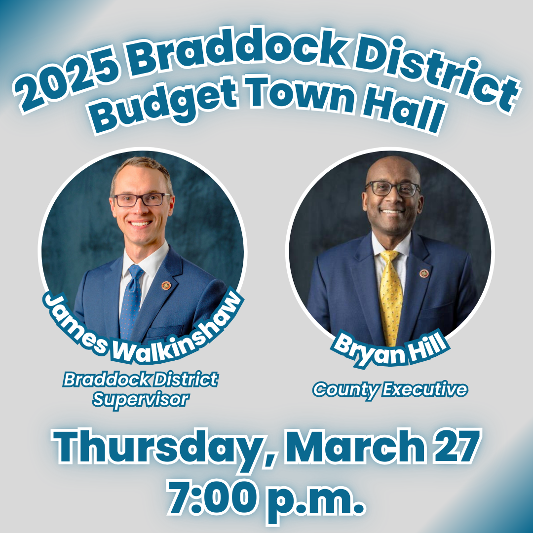The workshops will take place around the County; the Braddock District’s will be tomorrow, Friday, March 28, from 10:00 a.m. - 1:00 p.m. in Braddock Hall (9002 Burke Lake Road, Burke).
