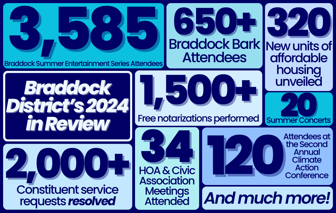 We've had an incredible year in the Braddock District and Fairfax County and I'm grateful to the dedicated Braddock District staff who work so hard to serve you. I'm also grateful to each of you – the members of our community who work with us every day to solve problems and make progress.