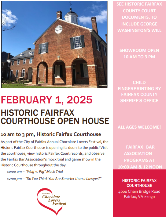 As part of the City of Fairfax Annual Chocolate Lovers Festival, the Historic Fairfax Courthouse is opening its doors to the public!